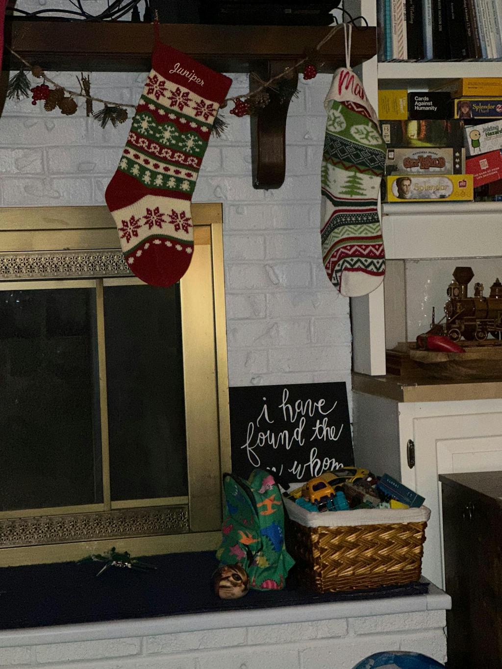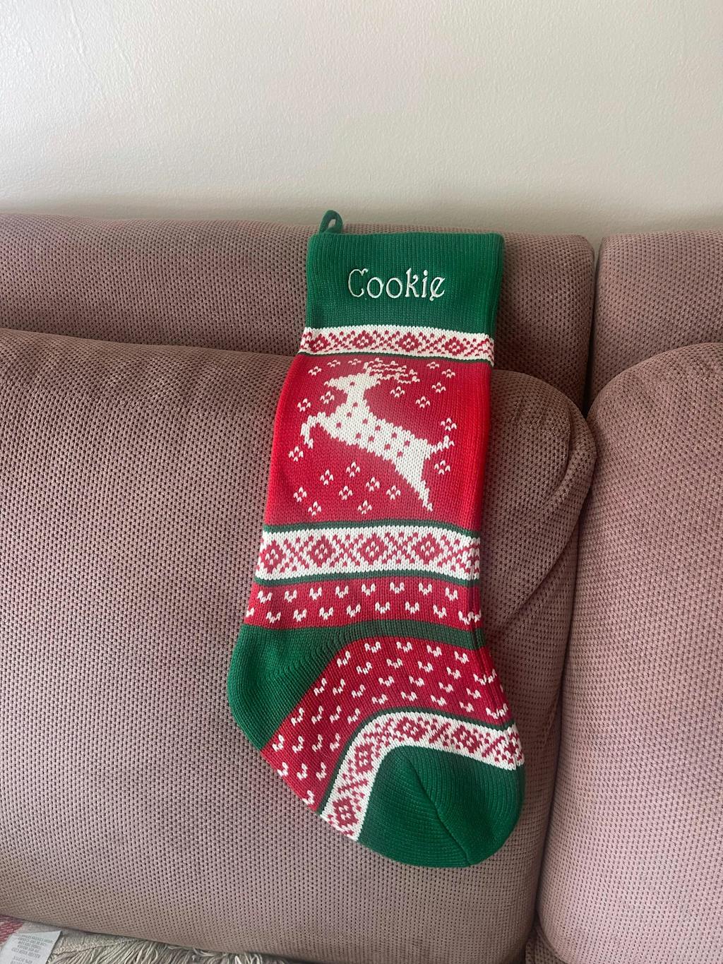 The Cat Meow and Dog Woof stockings have a little pocket on the front and the dog stocking has a little knitted bone and the kitty stocking has a little mouse, these fit into the front pocket :-) See how this looks in the additional image ( just click on the small thumbnails under the main image )