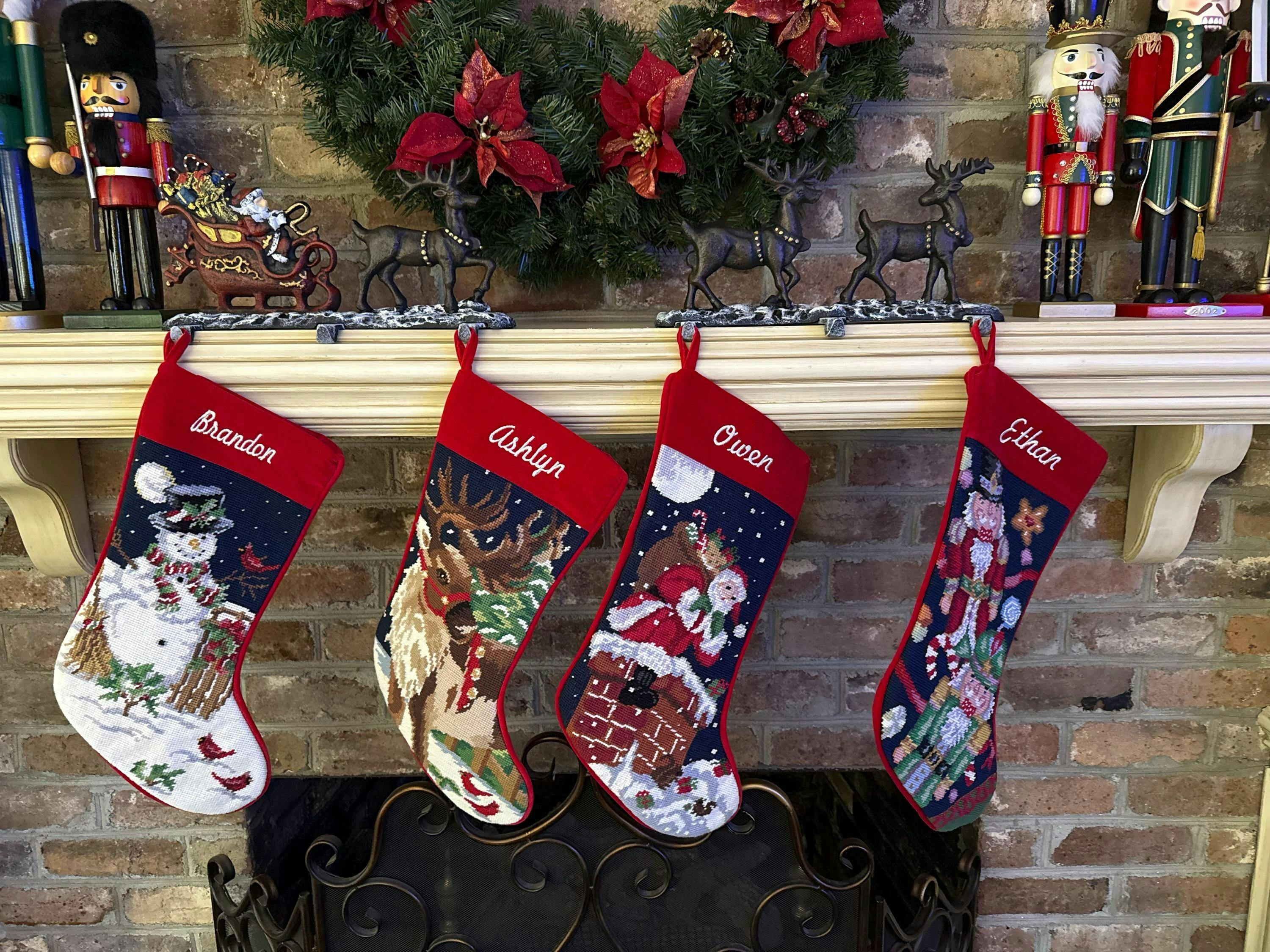 Needlepoint Christmas Stockings Personalized Santa Nutcracker Reindeer Snowman Old World Finished Embroidered Stockings with Names