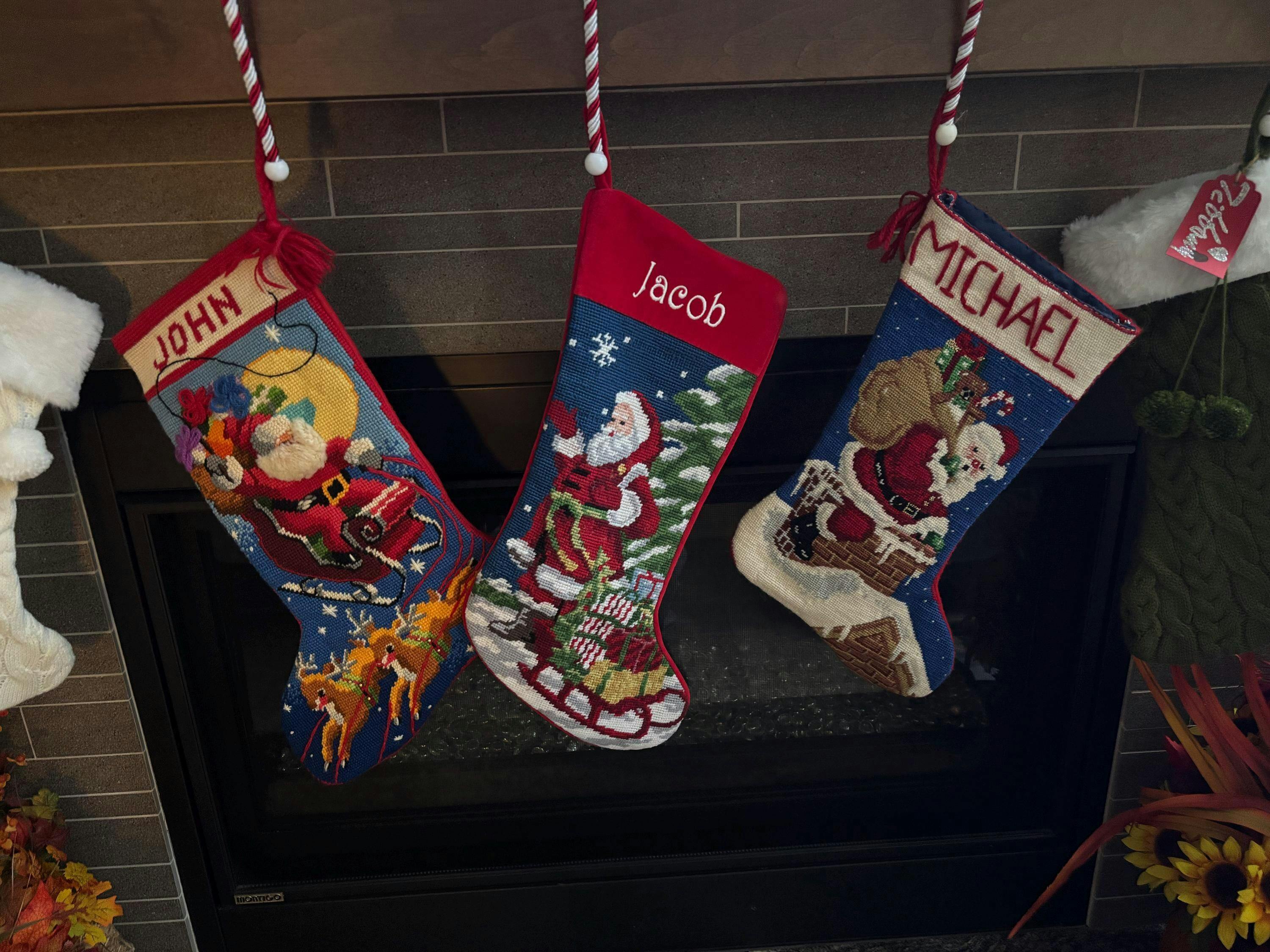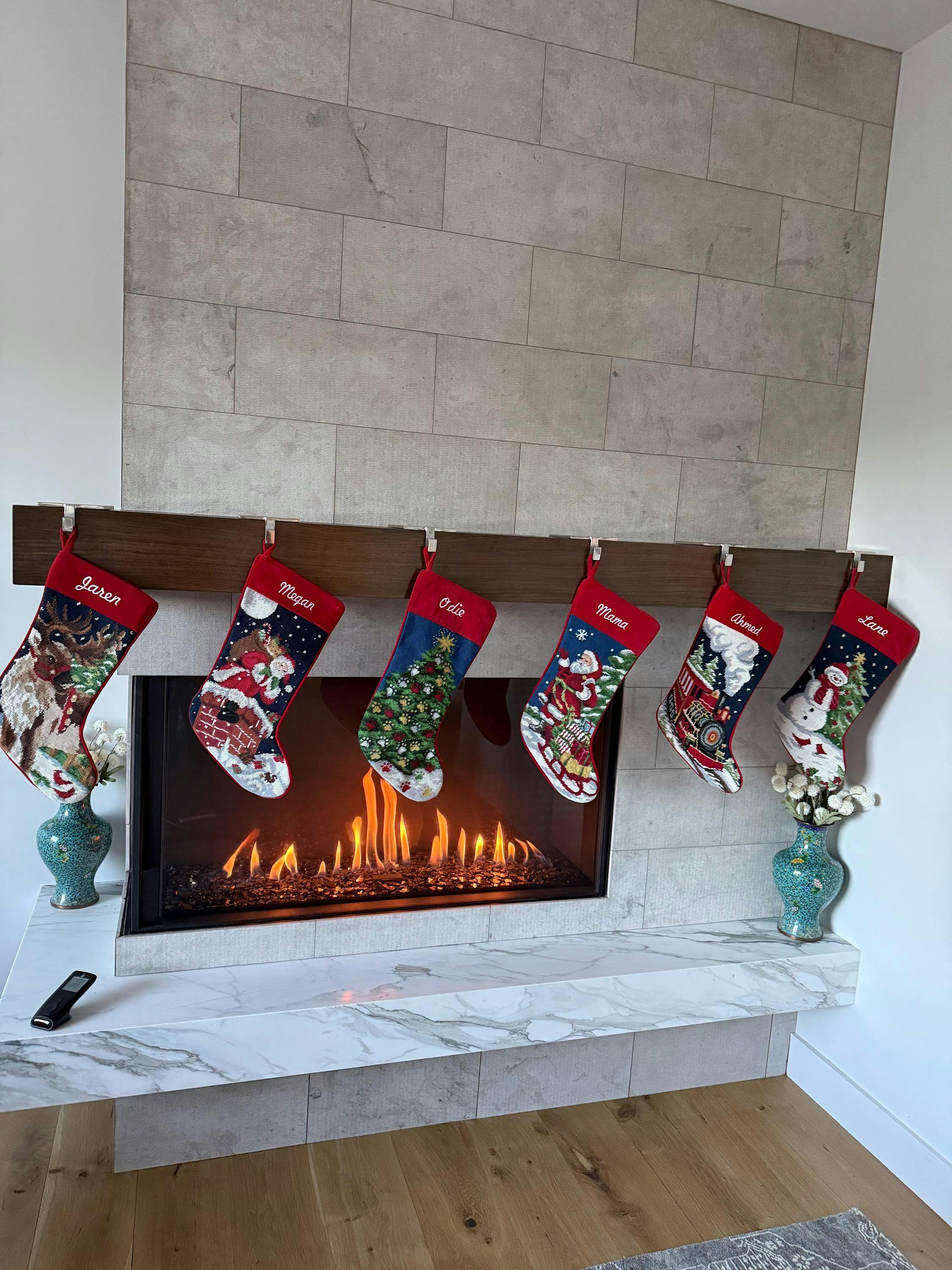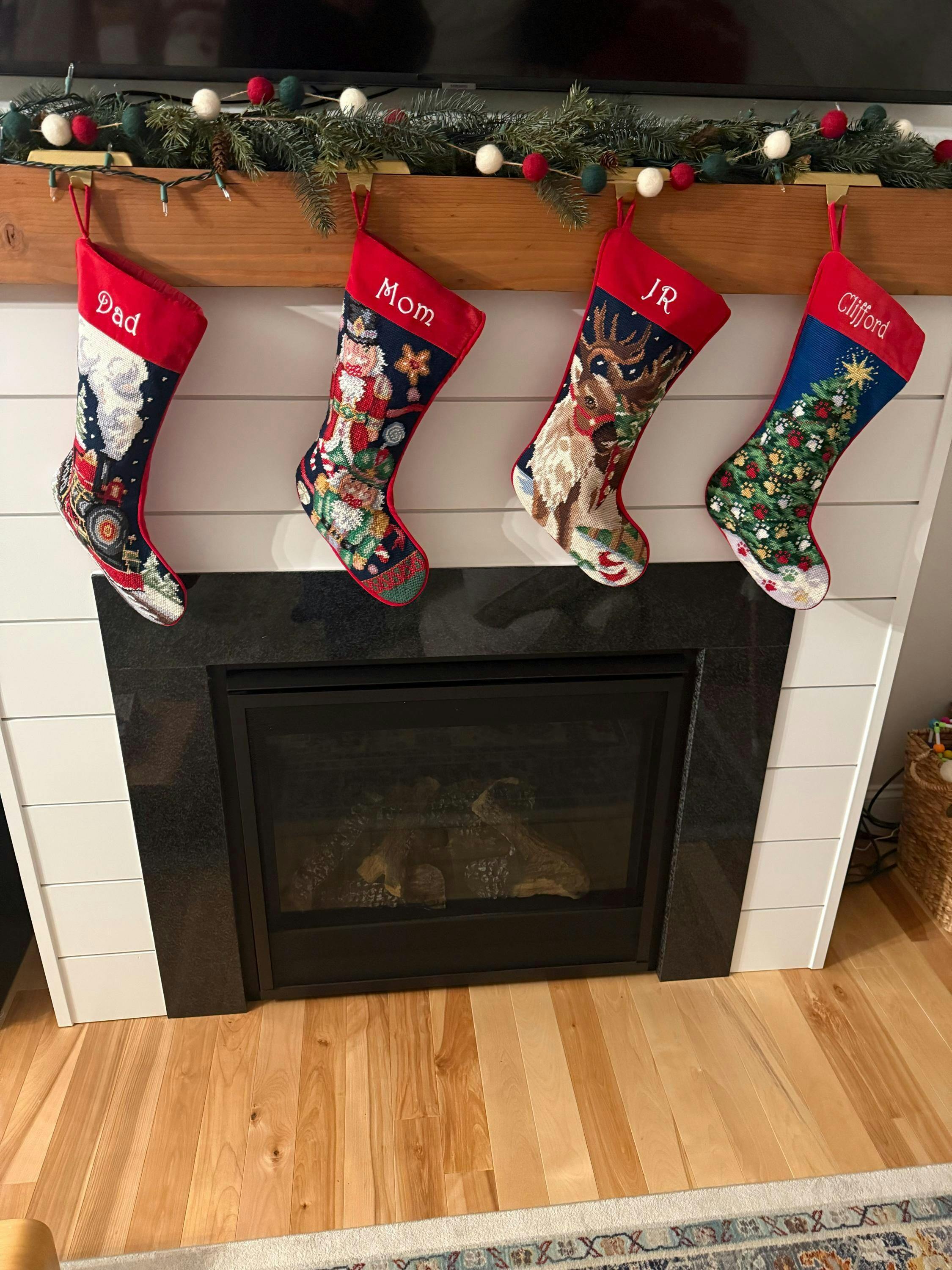 Our Needlepoint Stockings, a blend of tradition and innovation, designed to become cherished heirlooms for your family. Shop now and discover the perfect addition to your holiday decorations.  Our 2025 designs, such as Needlepoint Christmas Train, Pet Paw Tree, Santa with Sled and Gifts, Angel over the Christmas Village, Santa...