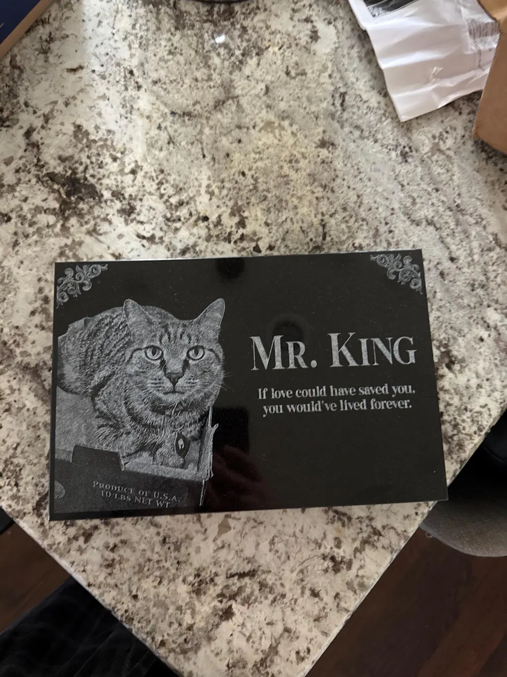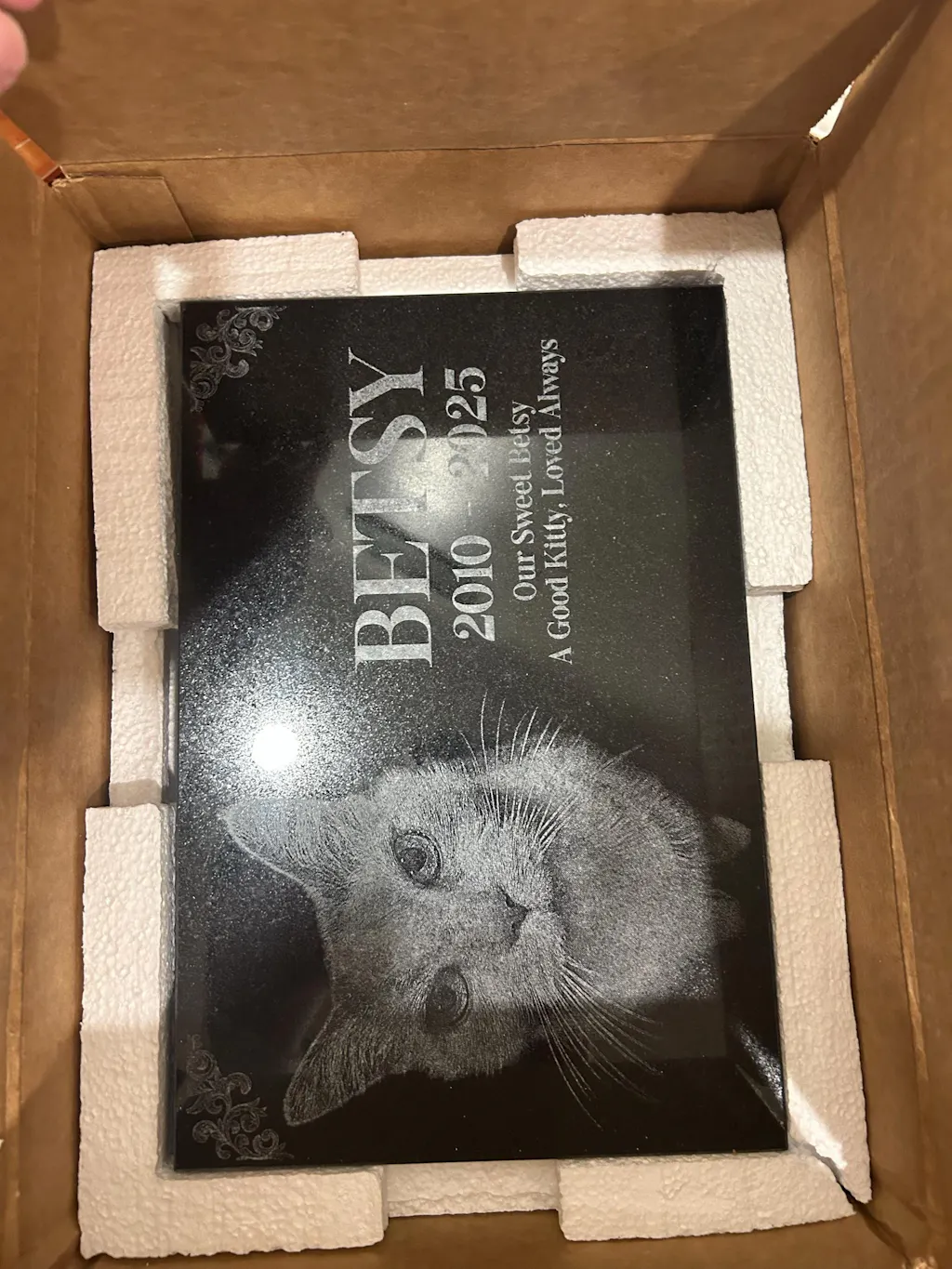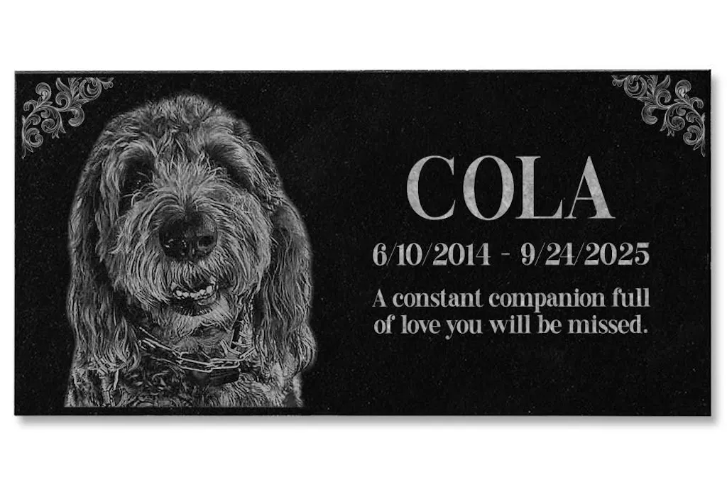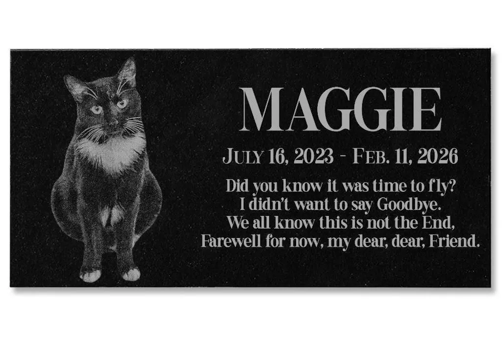 Our art department carefully creates a proof of your pet grave marker before anything is engraved, and we only proceed once you give final approval. The engraved pet memorial is laser-etched with your pet’s photo and any special message you wish to include, ensuring your pet’s memory is preserved beautifully. With exceptional durability and weather resistance, these pet memorial stones will endure the elements while serving as a meaningful tribute to the loss of your family’s cherished pet.