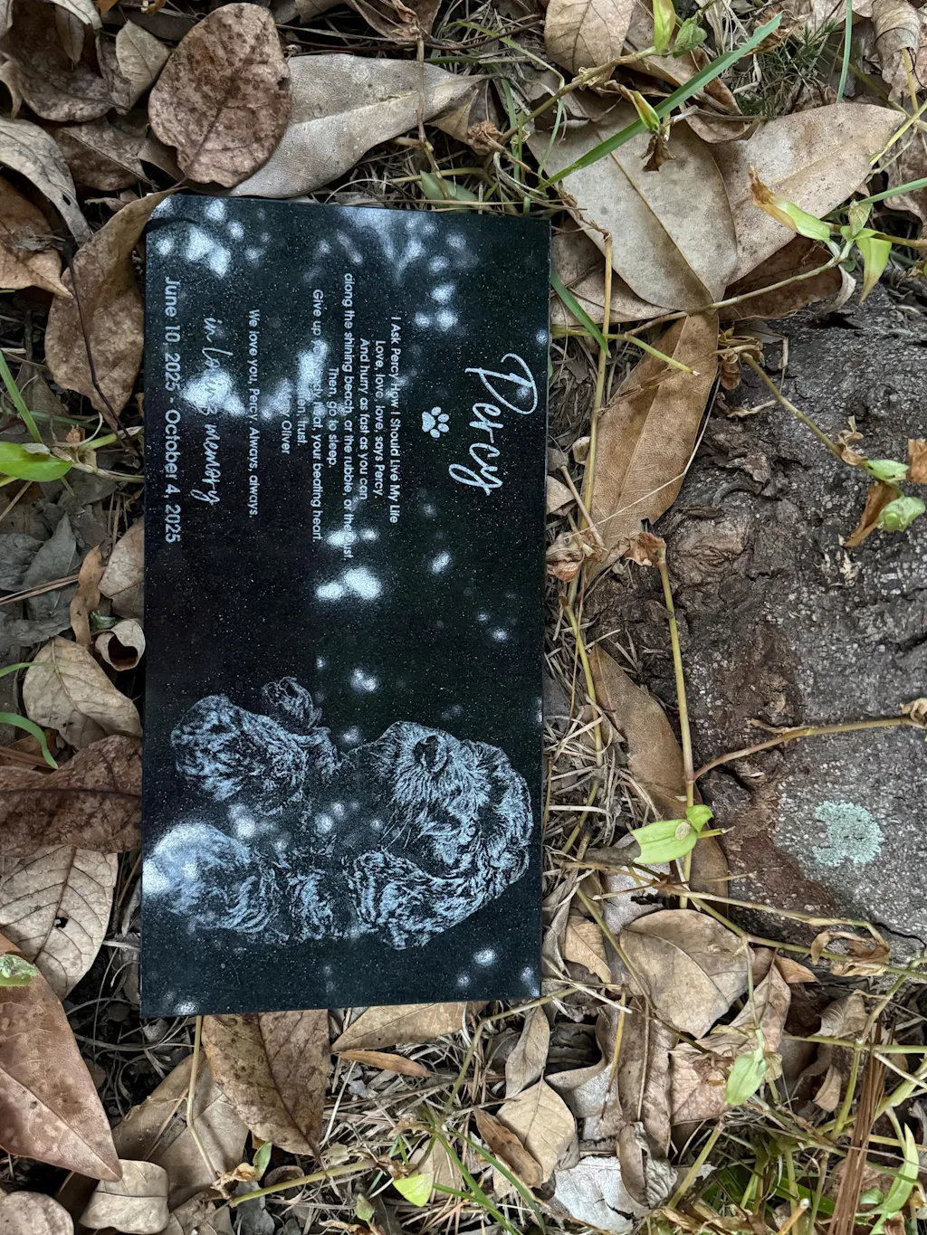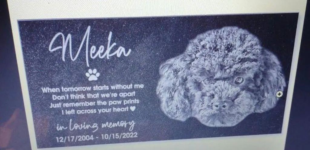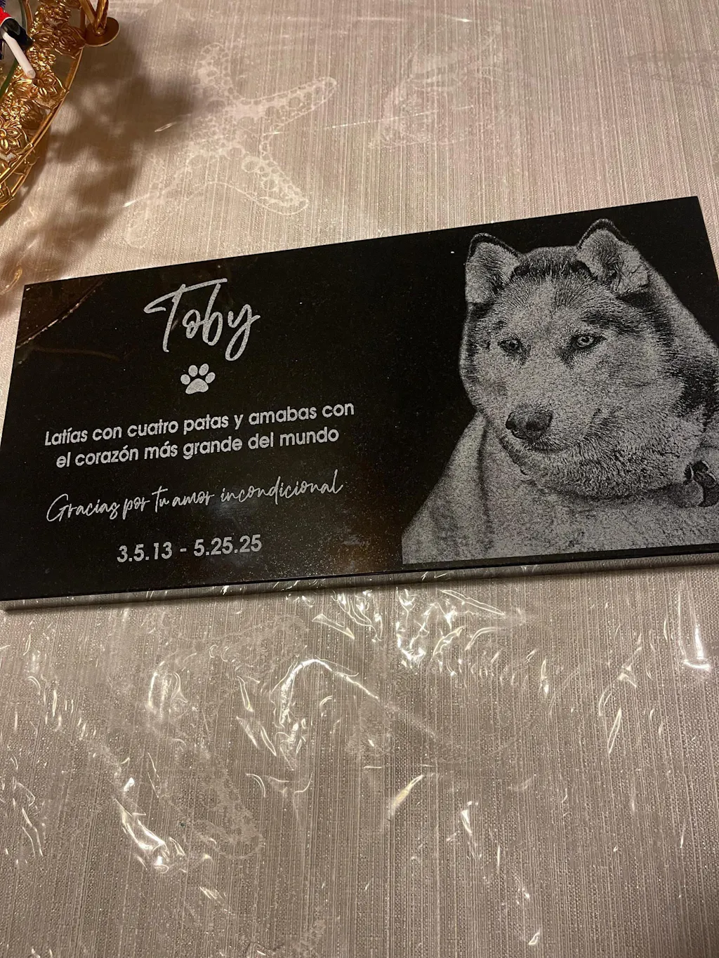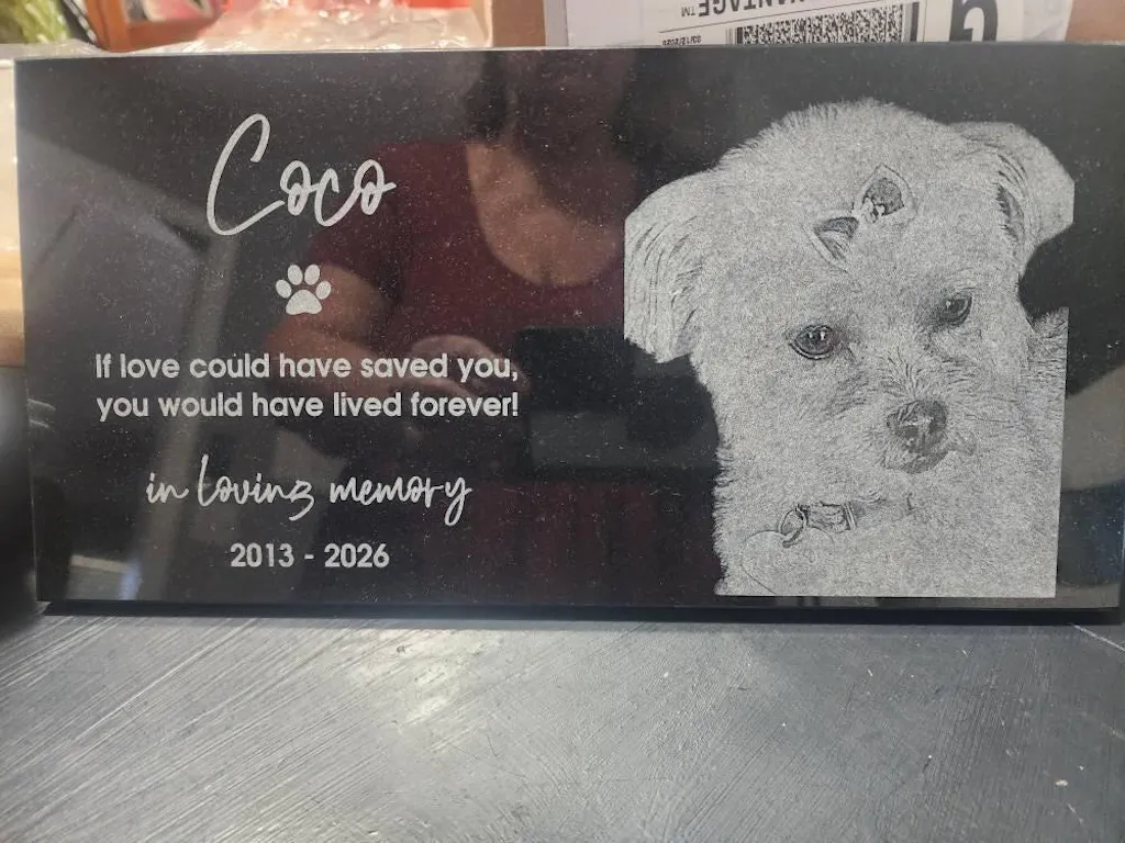 Honor your beloved pet's memory with a personalized "In Loving Memory" pet memorial stone. This engraved tribute features your pet's photo and serves as a beautiful grave marker for cemeteries, garden stone, or backyard memorial. Crafted from durable materials, this memorial stone is suitable for outdoor use or as a comforting keepsake in your home, on a window sill, or incorporated into a rock garden. It's a thoughtful loss gift for grieving pet owners, forever cherishing the love and joy your furry friend brought into your life.
