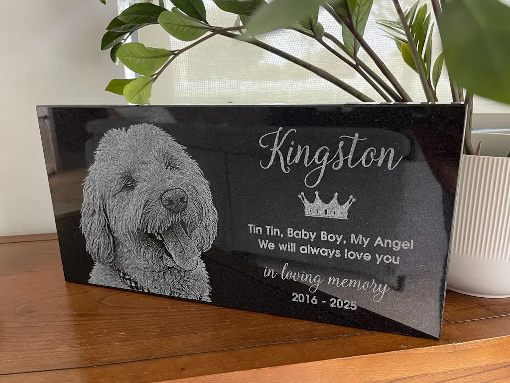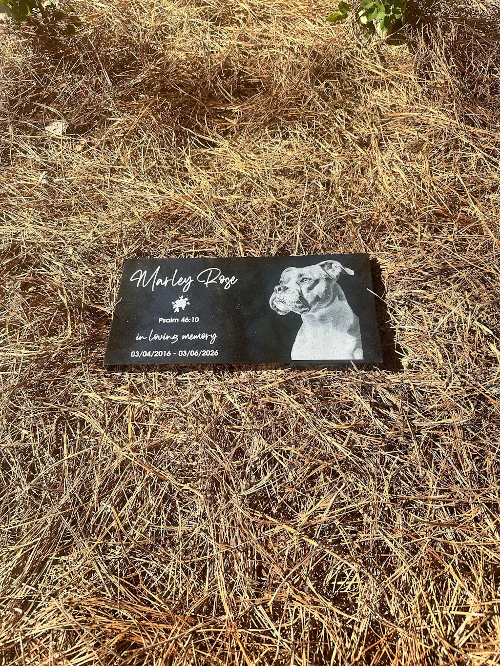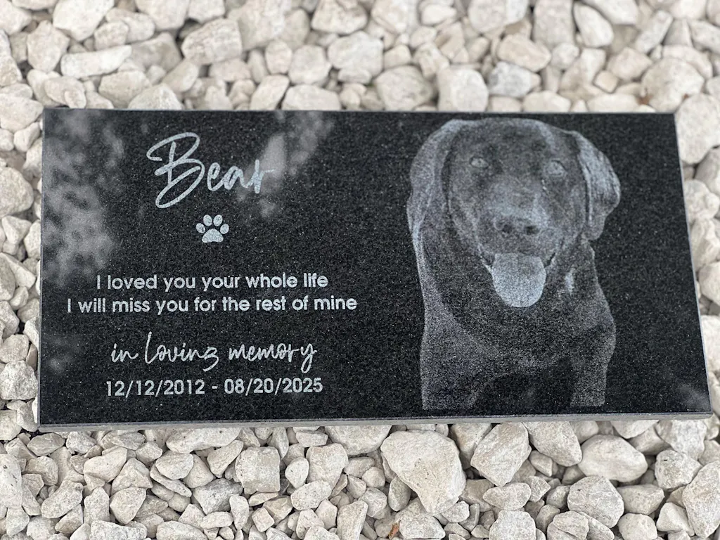 DURABILITY: Will the engraving fade? No our precise laser engraving ensures your chosen text is seamlessly etched into the granite, guaranteeing longevity and readability. Our memorial stones are resistant to weather and time, perfect for outdoor settings. With occasional cleaning to remove grease, dirt, or hard water stains, and it will look as beautiful as the day it arrived.