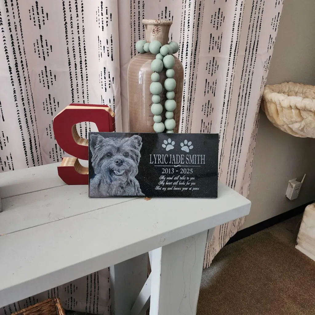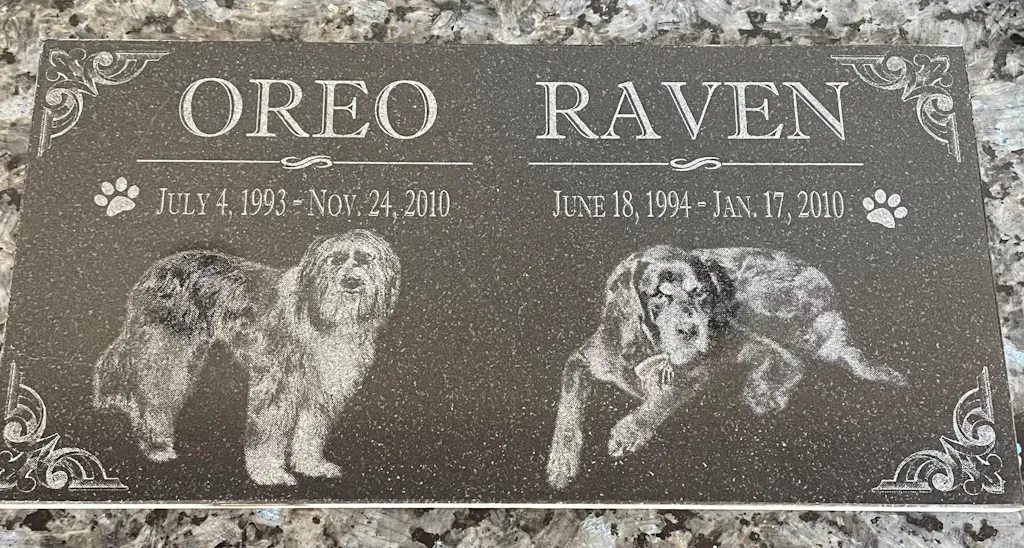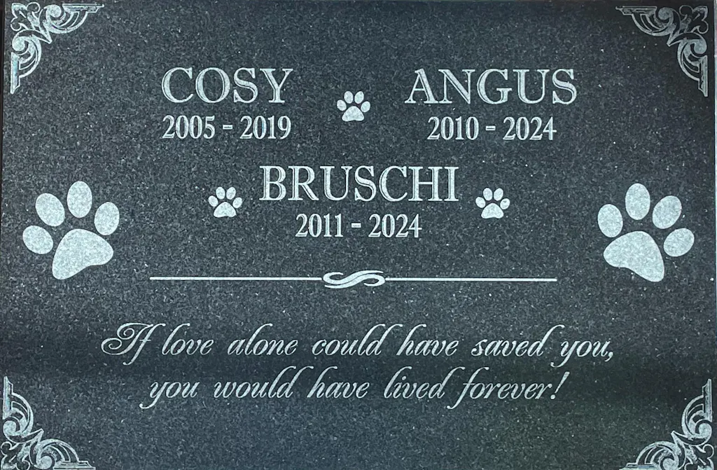These pet headstones come in various sizes and styles, and we offer custom engraving options for both text and imagery to ensure the perfect remembrance for your pet.