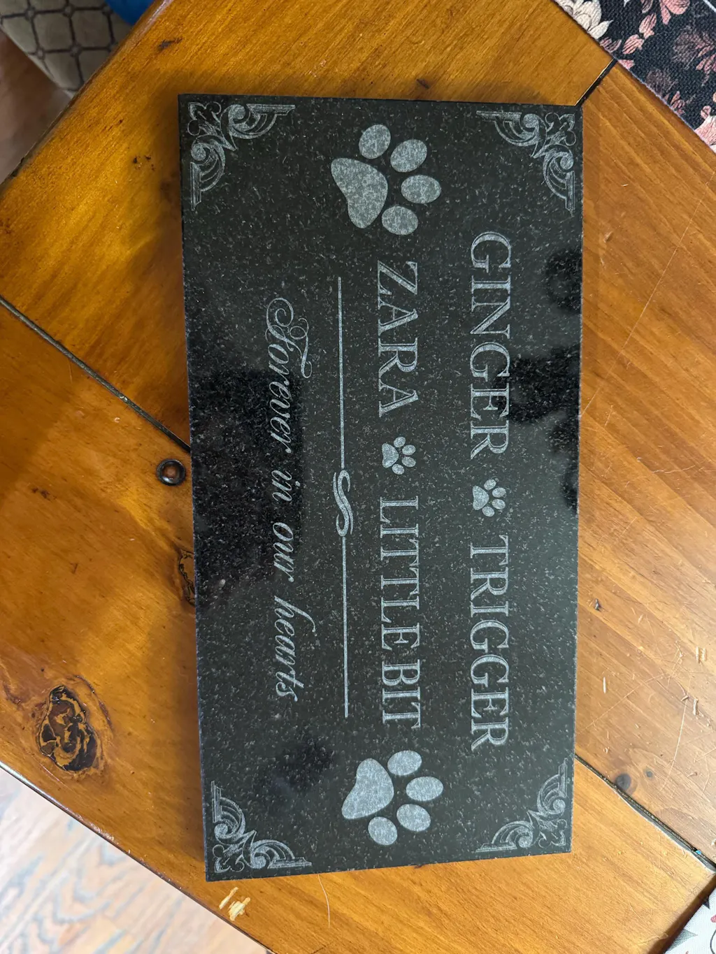 Our art department carefully creates a proof of your pet grave marker before anything is engraved, and we only proceed once you give final approval. The engraved pet memorial is laser-etched with your pet’s photo and any special message you wish to include, ensuring your pet’s memory is preserved beautifully. With exceptional durability and weather resistance, these pet memorial stones will endure the elements while serving as a meaningful tribute to the loss of your family’s cherished pet.