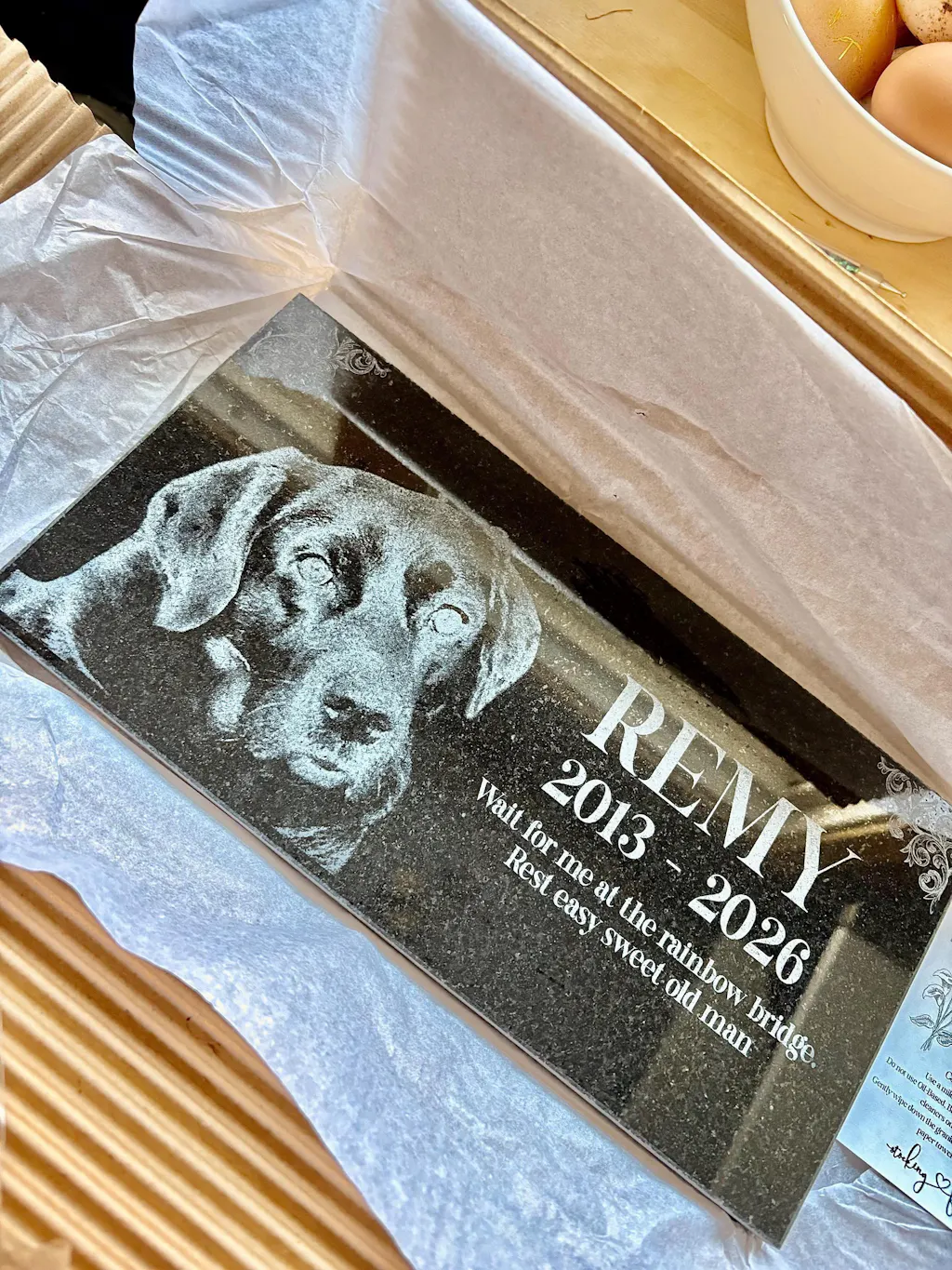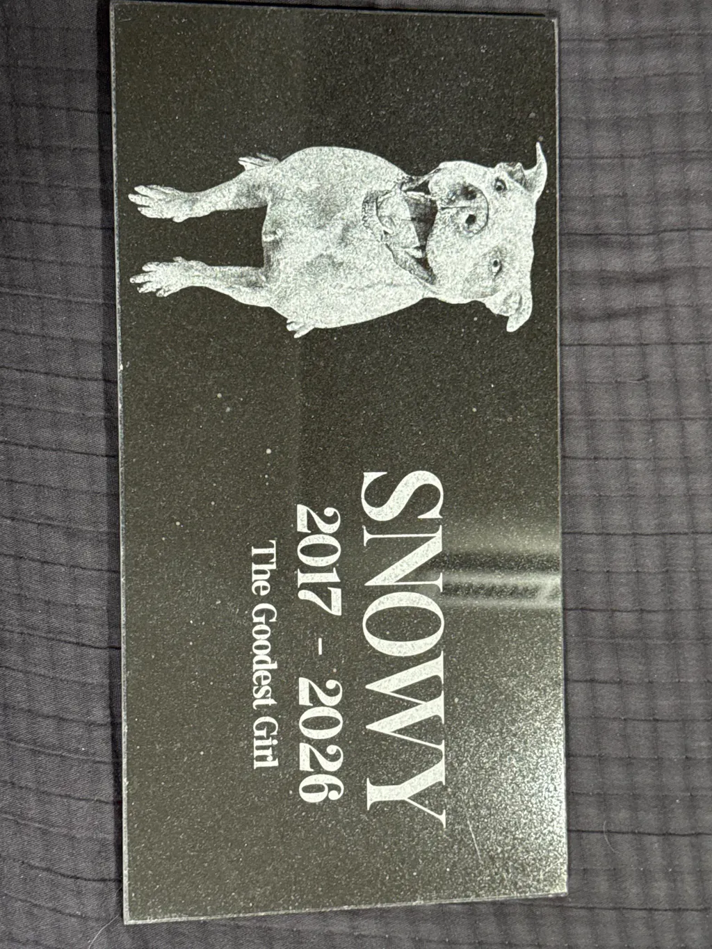 Our art department carefully creates a proof of your pet grave marker before anything is engraved, and we only proceed once you give final approval. The engraved pet memorial is laser-etched with your pet’s photo and any special message you wish to include, ensuring your pet’s memory is preserved beautifully. With exceptional durability and weather resistance, these pet memorial stones will endure the elements while serving as a meaningful tribute to the loss of your family’s cherished pet.