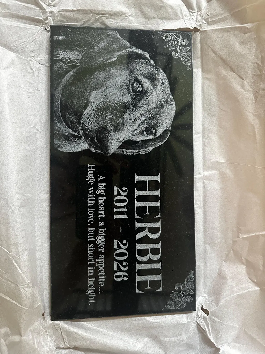 Our art department carefully creates a proof of your pet grave marker before anything is engraved, and we only proceed once you give final approval. The engraved pet memorial is laser-etched with your pet’s photo and any special message you wish to include, ensuring your pet’s memory is preserved beautifully. With exceptional durability and weather resistance, these pet memorial stones will endure the elements while serving as a meaningful tribute to the loss of your family’s cherished pet.