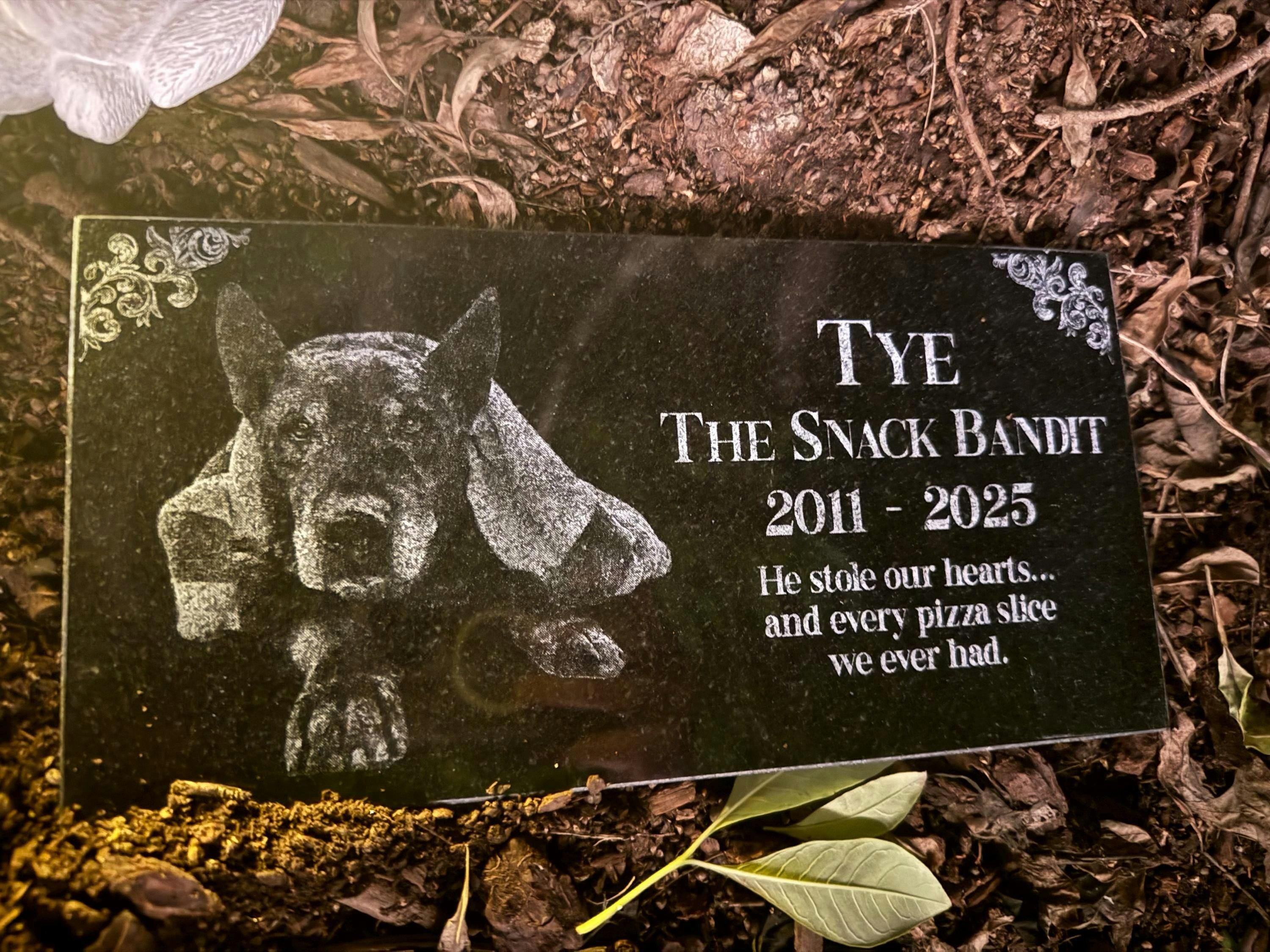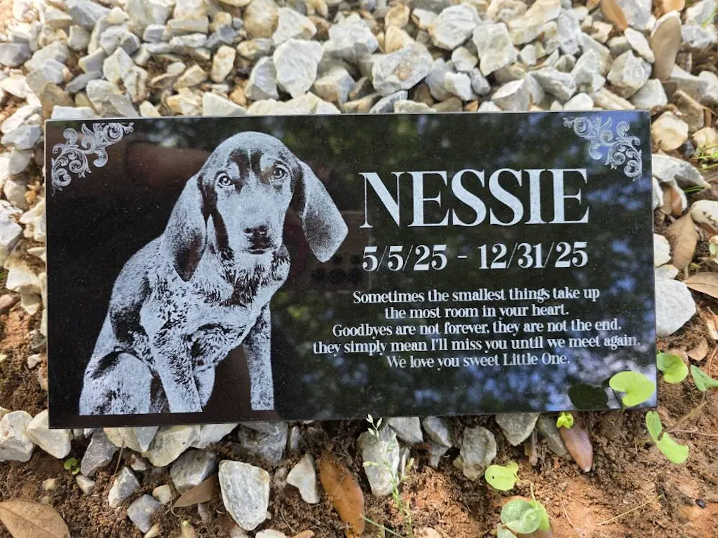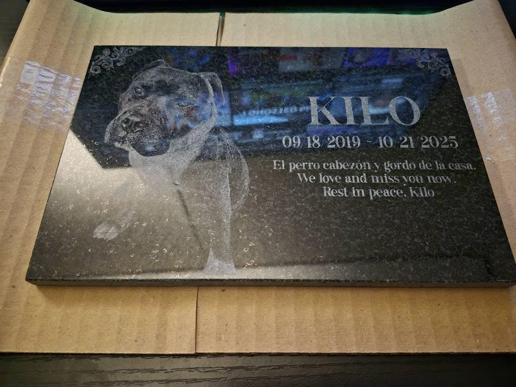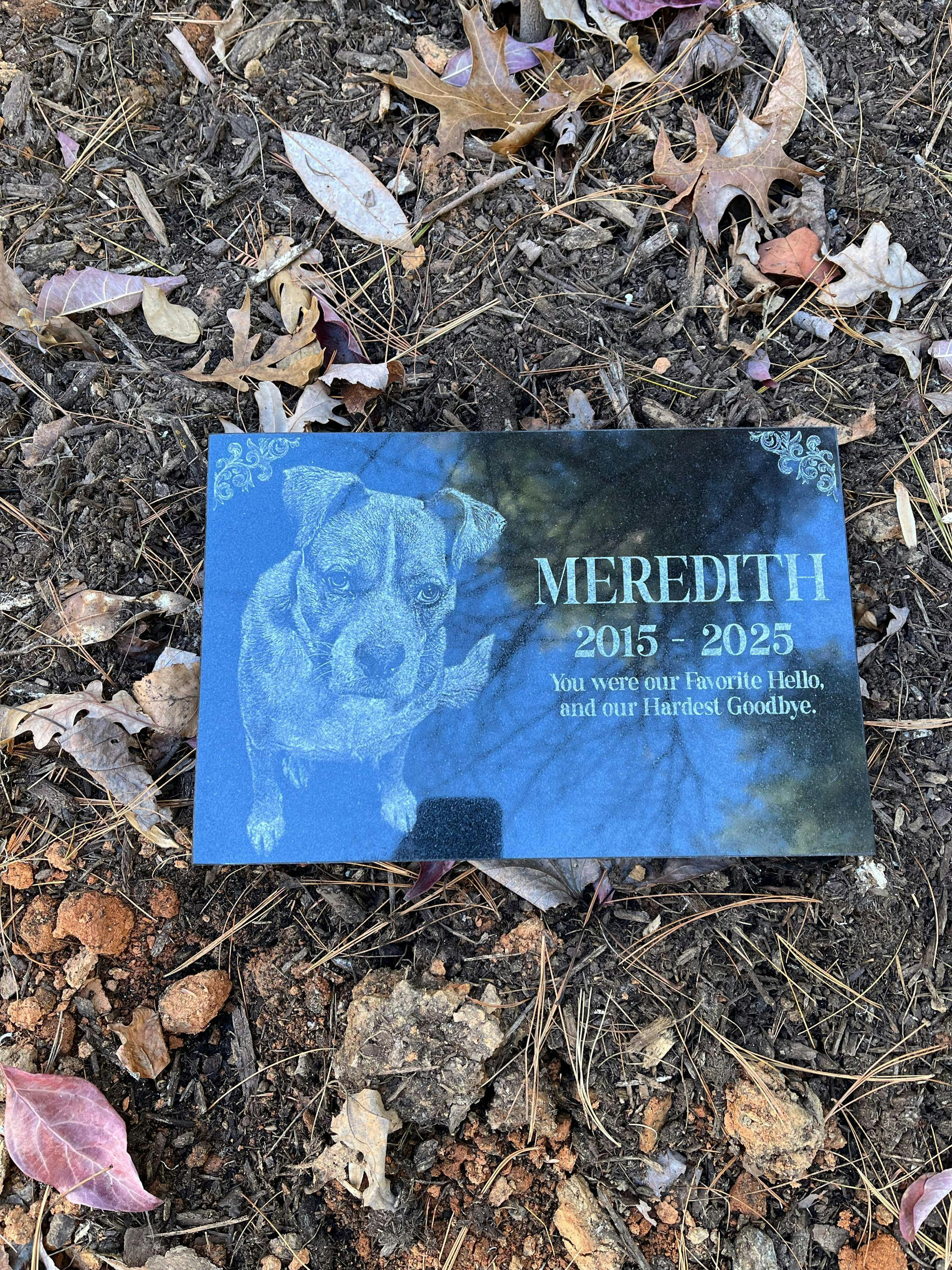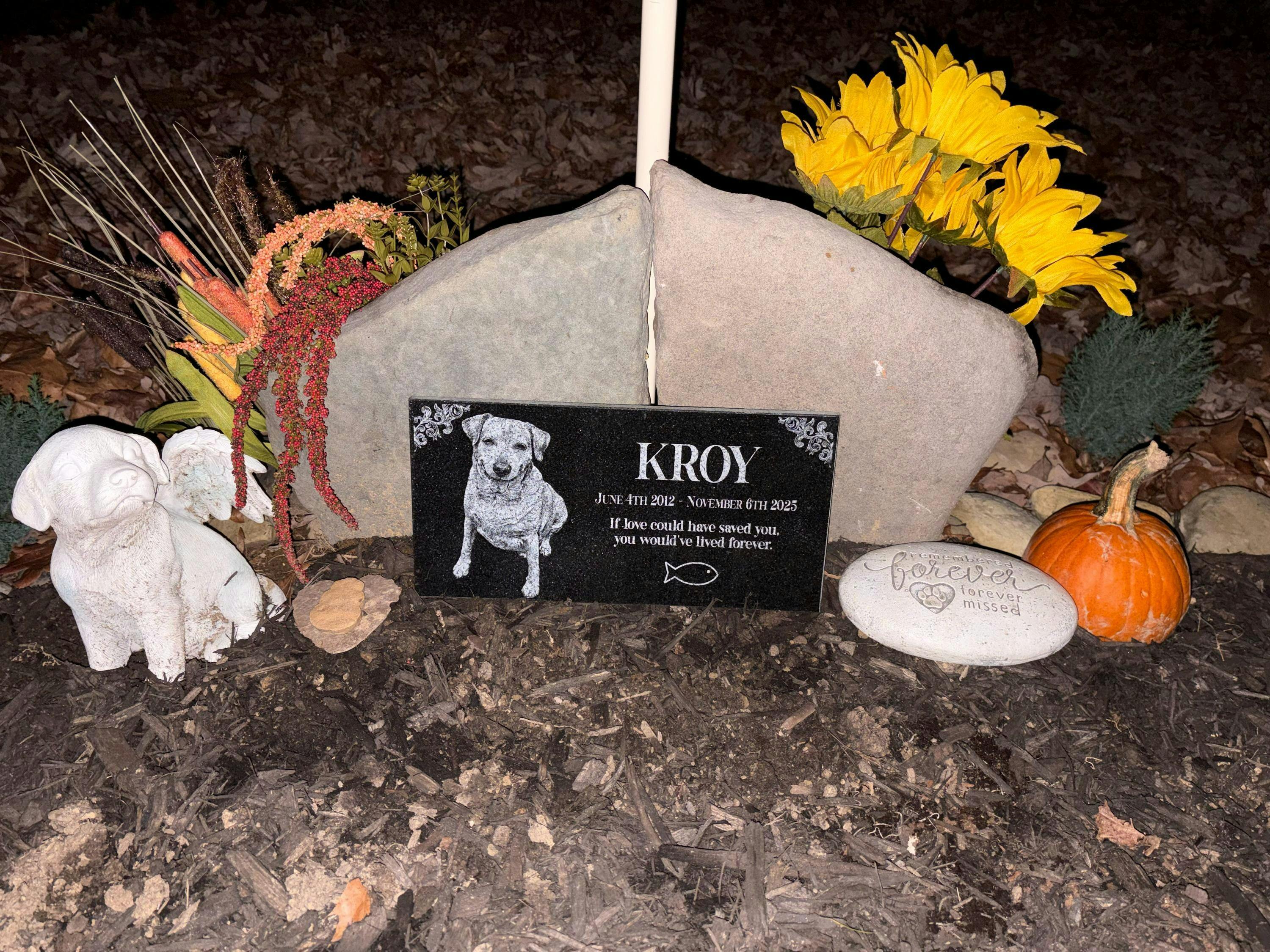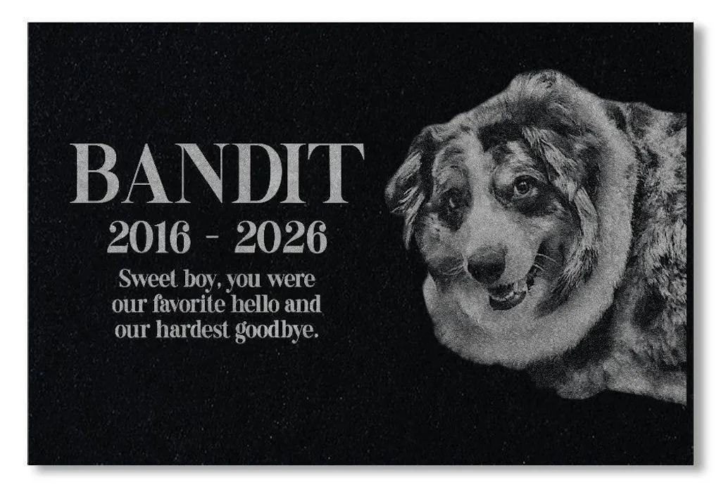 Our art department carefully creates a proof of your pet grave marker before anything is engraved, and we only proceed once you give final approval. The engraved pet memorial is laser-etched with your pet’s photo and any special message you wish to include, ensuring your pet’s memory is preserved beautifully. With exceptional durability and weather resistance, these pet memorial stones will endure the elements while serving as a meaningful tribute to the loss of your family’s cherished pet.