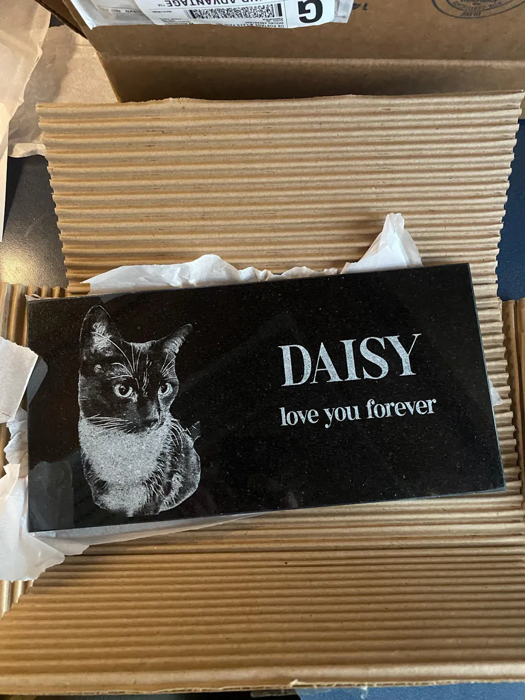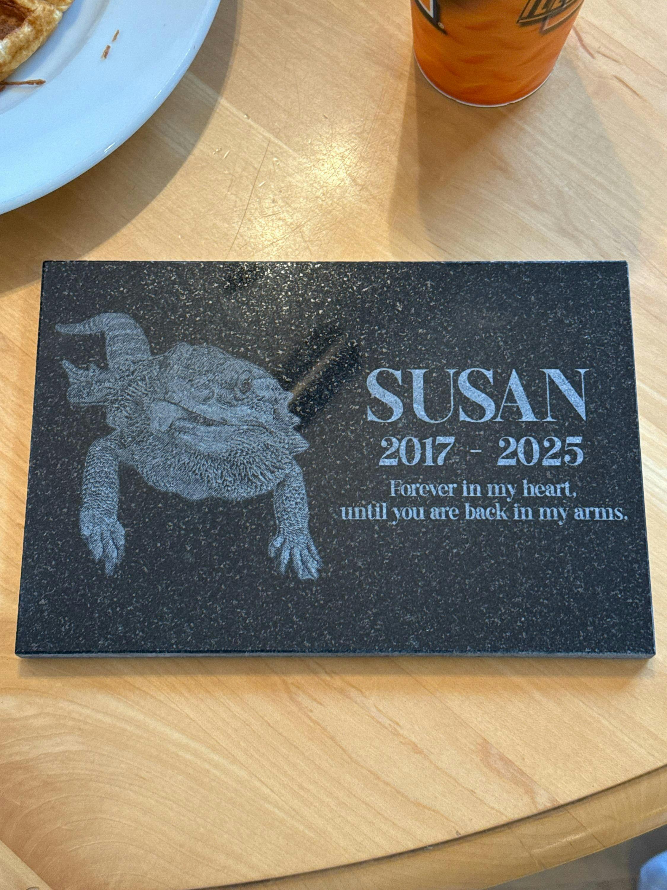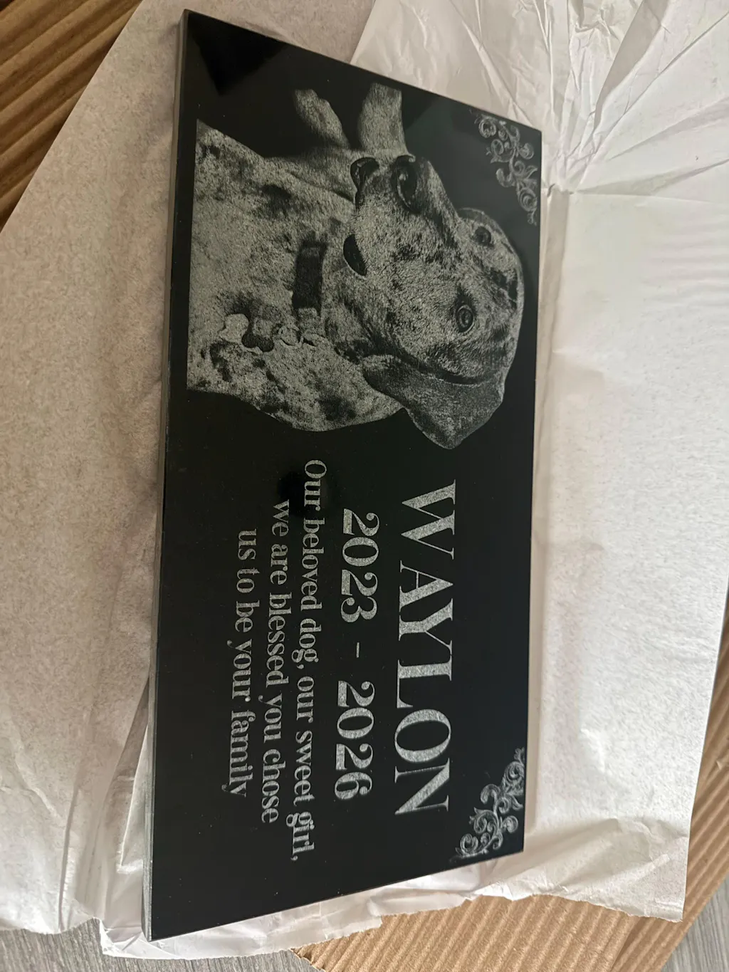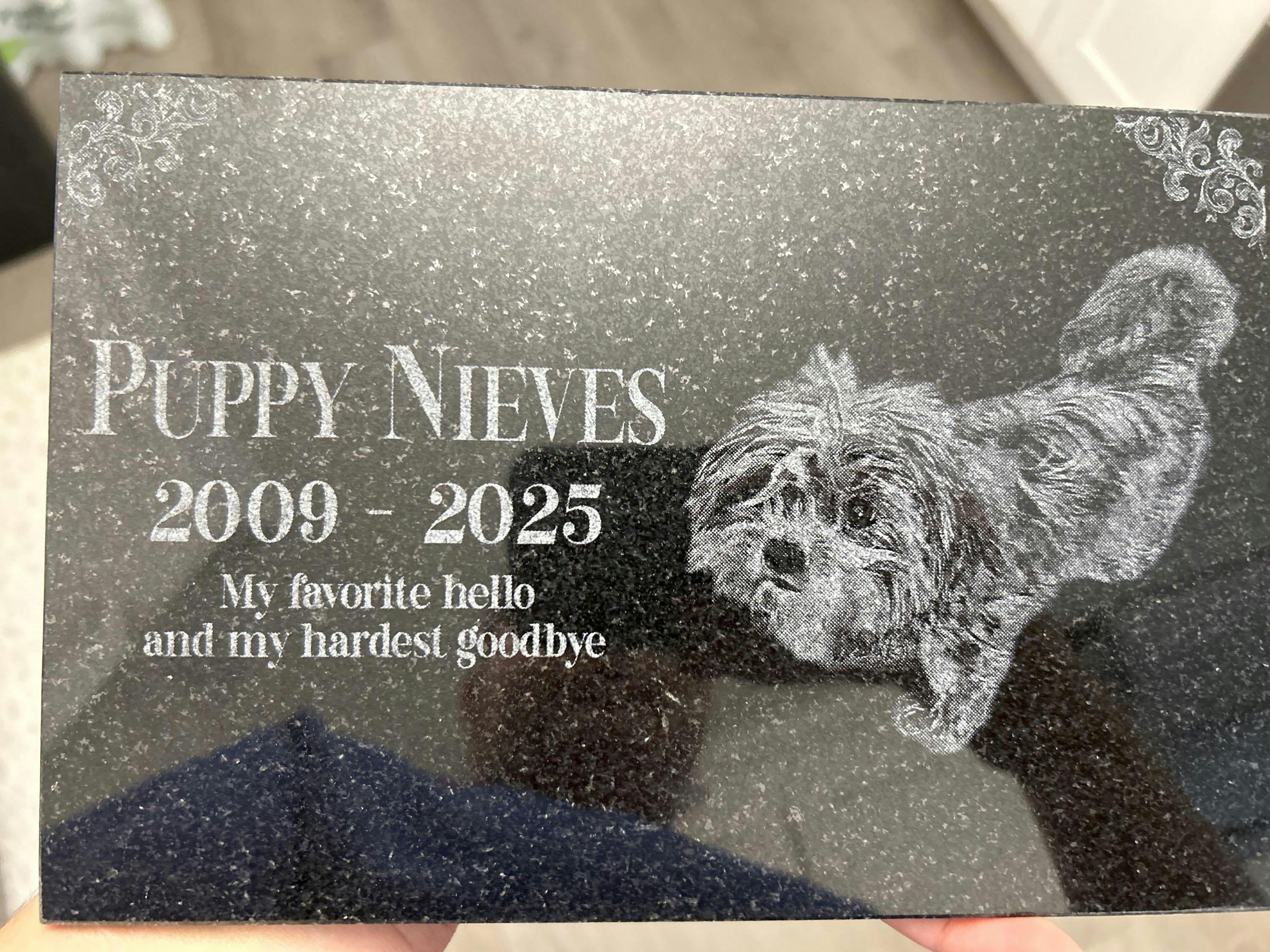 Our art department carefully creates a proof of your pet grave marker before anything is engraved, and we only proceed once you give final approval. The engraved pet memorial is laser-etched with your pet’s photo and any special message you wish to include, ensuring your pet’s memory is preserved beautifully. With exceptional durability and weather resistance, these pet memorial stones will endure the elements while serving as a meaningful tribute to the loss of your family’s cherished pet.