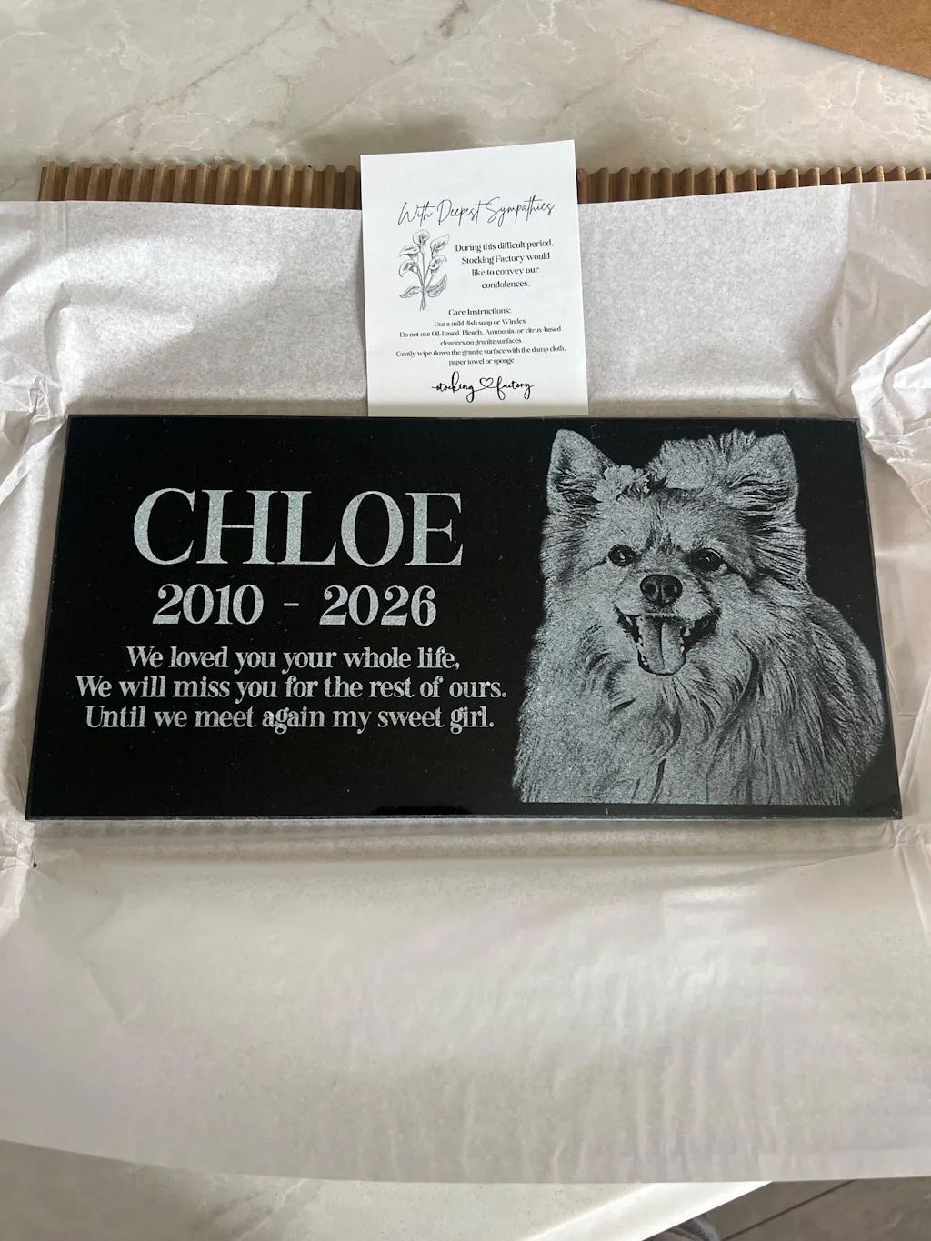 DURABILITY: Will the engraving fade? No, our memorial stones are resistant to weather and time, perfect for outdoor settings. With occasional cleaning to remove grease, dirt, or hard water stains, your item will look like new forever.