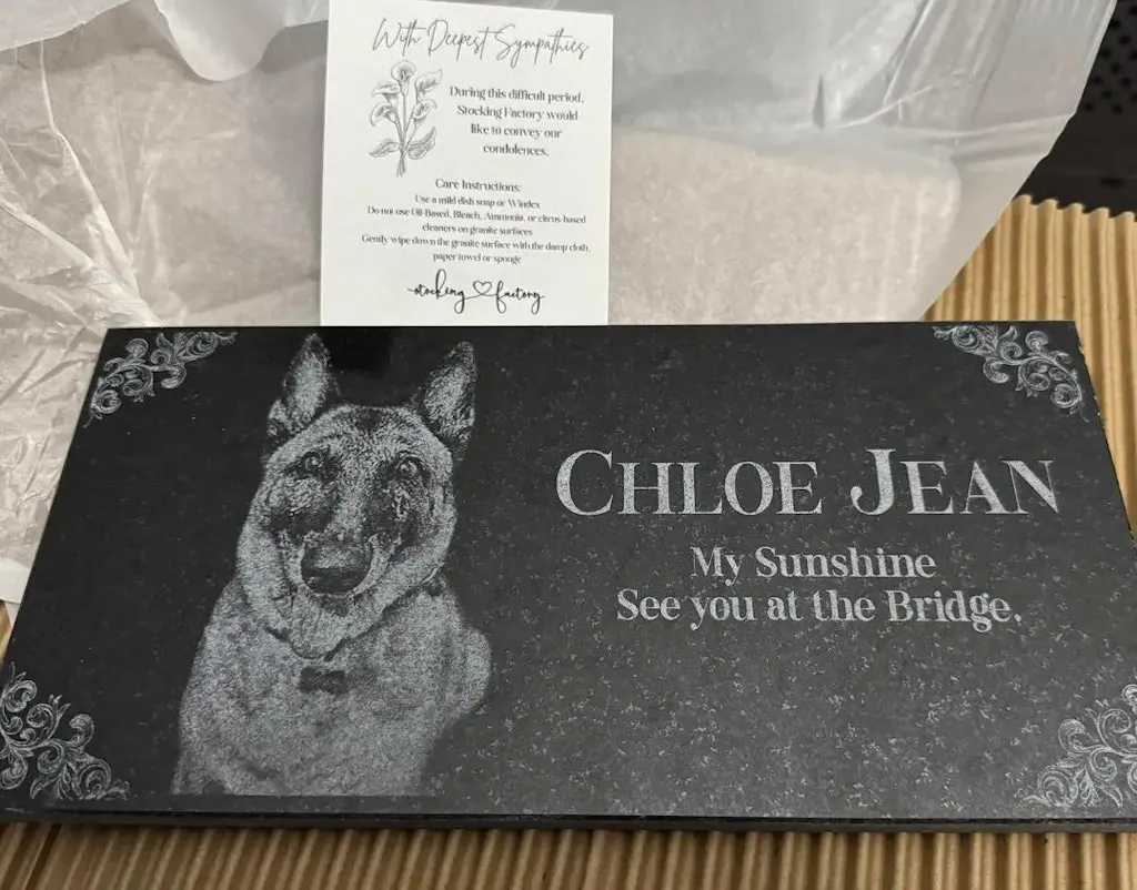 These pet headstones come in various sizes and styles, and we offer custom engraving options for both text and imagery to ensure the perfect remembrance for your pet.