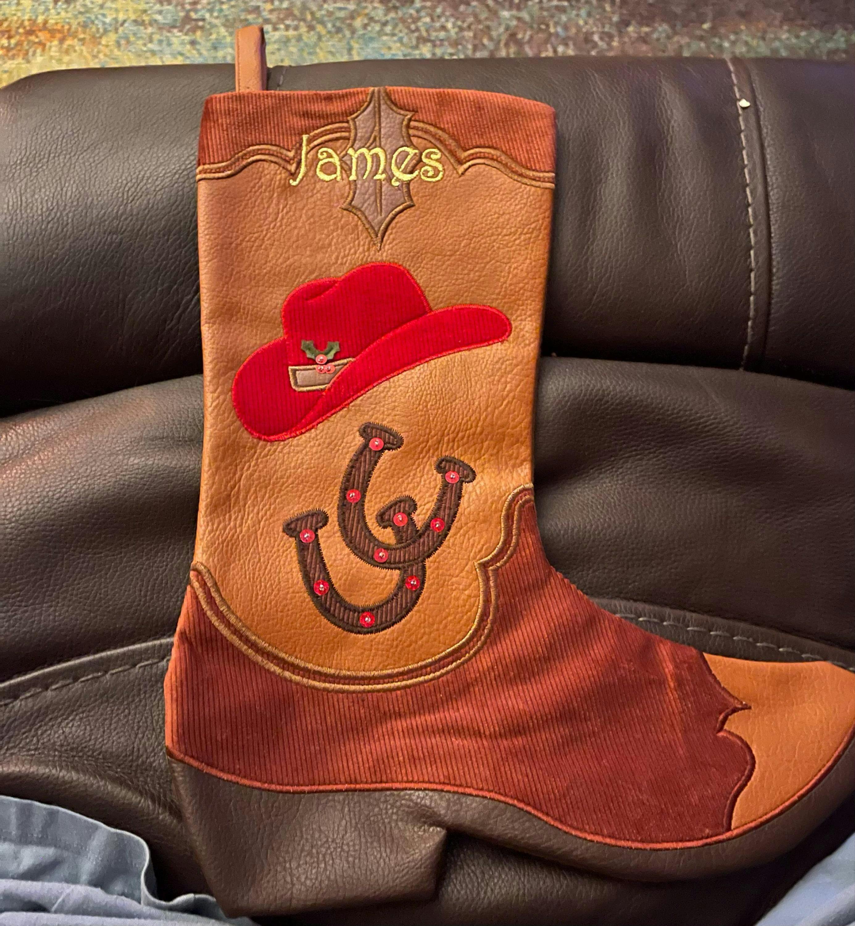 These are very cute cowboy boot-shaped stockings with names, and some have real jingle bells! It almost looks real. A must-have for any cowboy or cowgirl.