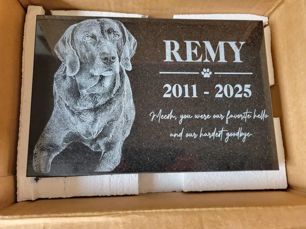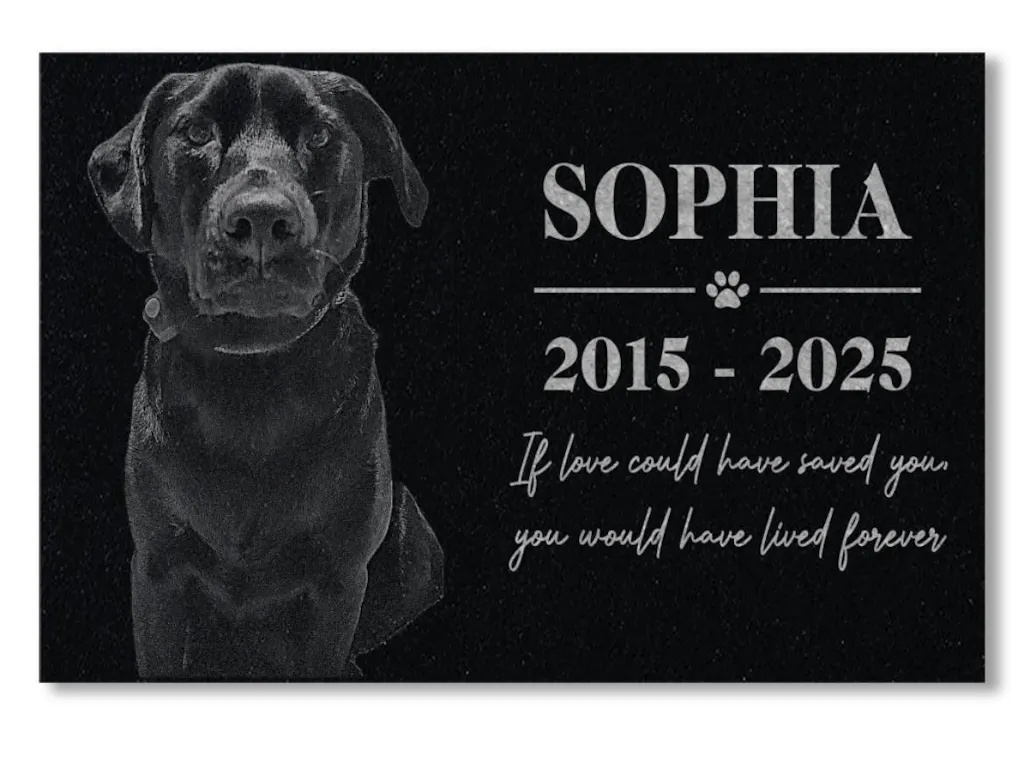 Honor the memory of your cherished pet with our versatile and beautifully crafted memorial stones. Whether you're commemorating a loyal Labrador Retriever, a graceful Golden Retriever, a spirited Shih Tzu, or a courageous Rottweiler, our memorial stones are tailored to reflect the unique bond you shared. But our tributes don’t stop there—our customizable designs extend to all types of pets, ensuring every cherished companion can be remembered.