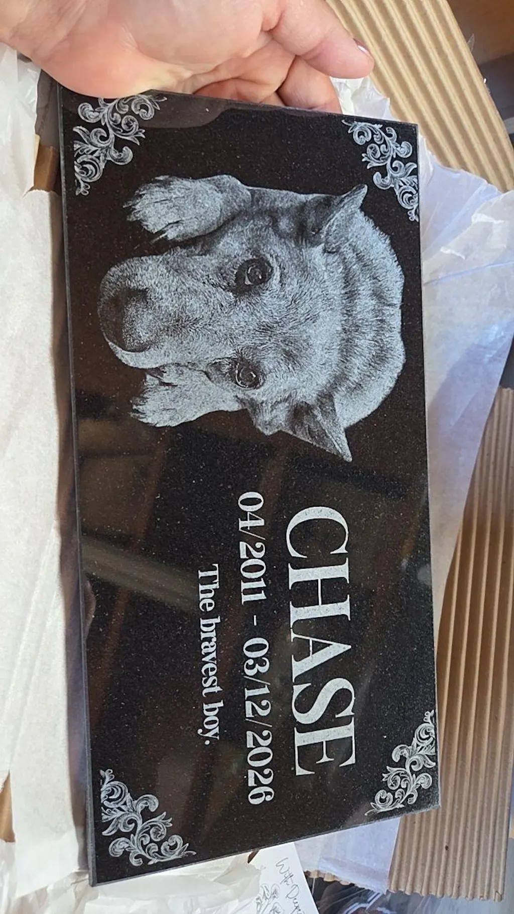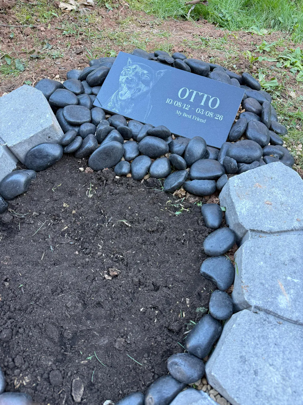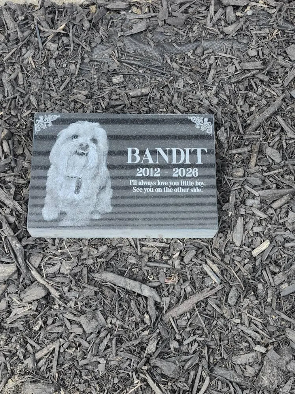 Our art department carefully creates a proof of your pet grave marker before anything is engraved, and we only proceed once you give final approval. The engraved pet memorial is laser-etched with your pet’s photo and any special message you wish to include, ensuring your pet’s memory is preserved beautifully. With exceptional durability and weather resistance, these pet memorial stones will endure the elements while serving as a meaningful tribute to the loss of your family’s cherished pet.