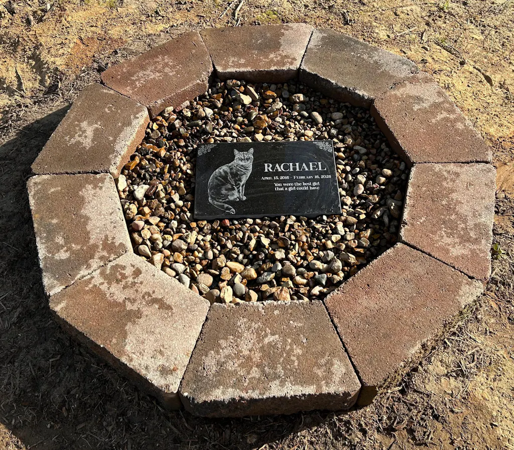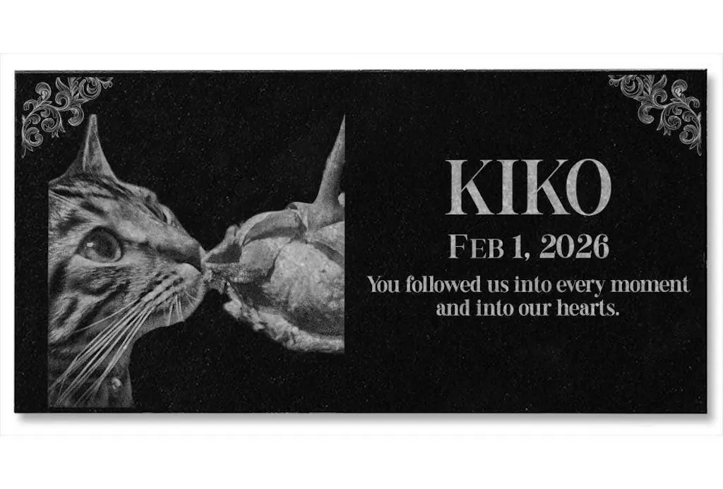Honor the memory of your beloved pet with a custom engraved pet memorial stone. Whether you’re commemorating a cherished cat, dog, bird, or any beloved animal, our personalized pet headstones are crafted from high-quality granite to create a lasting tribute. Perfect for outdoor display in gardens, pet burial sites, or even as a flat headstone for a pet cemetery, each marker is custom-designed with unlimited text and one image of your pet.